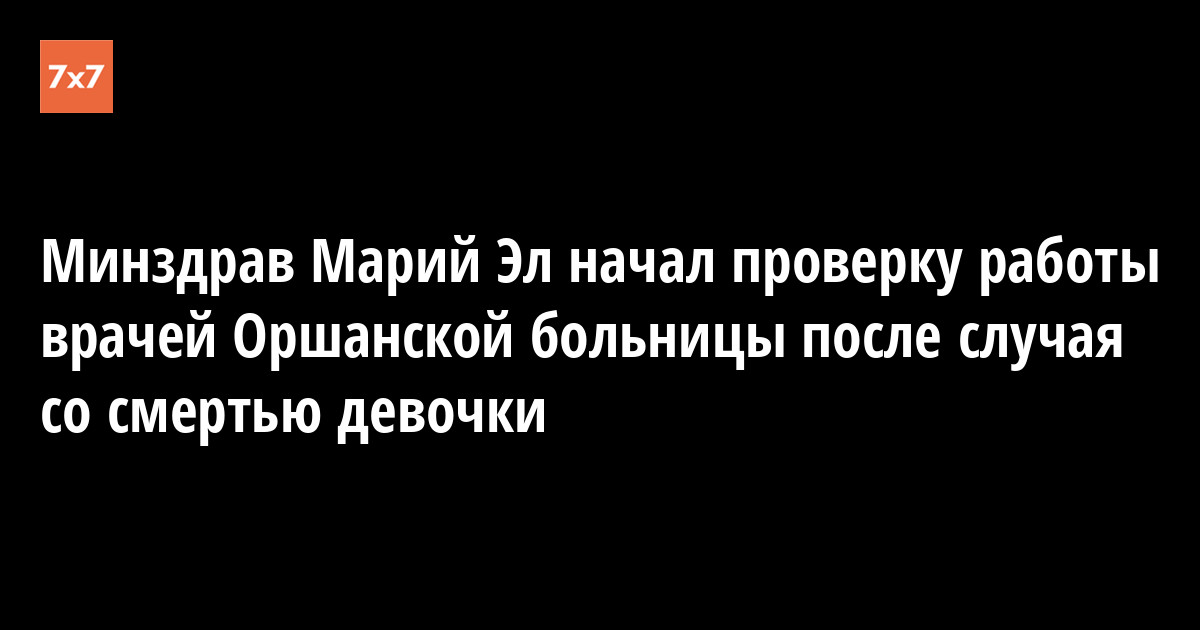 Министерство здравоохранения Марий Эл проверит, как Марине Рябининой оказывали медицинскую помощь на всех этапах. Об этом сообщила пресс-служба ведомства 11 апреля. Девочка умерла в республиканской больнице 4 апреля.