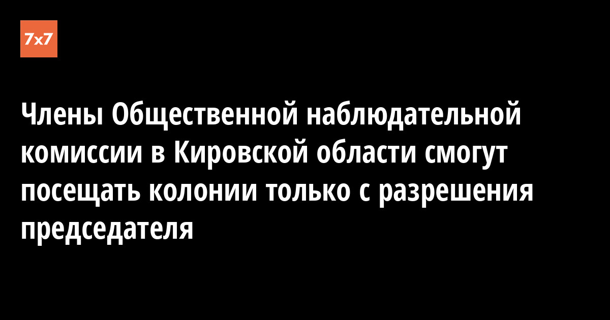 Члены Общественной наблюдательной комиссии Кировской области 7 июня приняли новый регламент, который предполагает, что посещать места принудительного содержания правозащитники смогут только с согласия председателя, передает корреспондент «7x7».