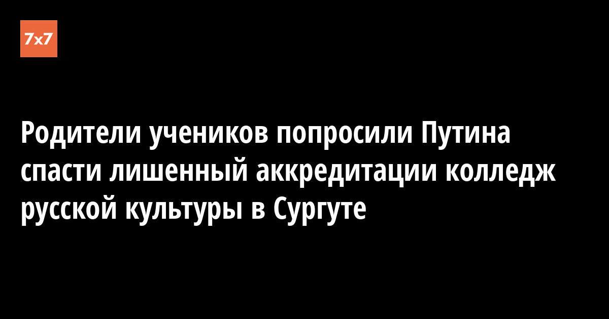 Родители детей, которые учатся в Сургутском колледже русской культуры имени А. С. Знаменского, написали письмо Владимиру Путину. Они просят президента помочь вернуть учебному заведению аккредитацию. Об этом корреспонденту «7x7» 8 июня сообщили сами родители.