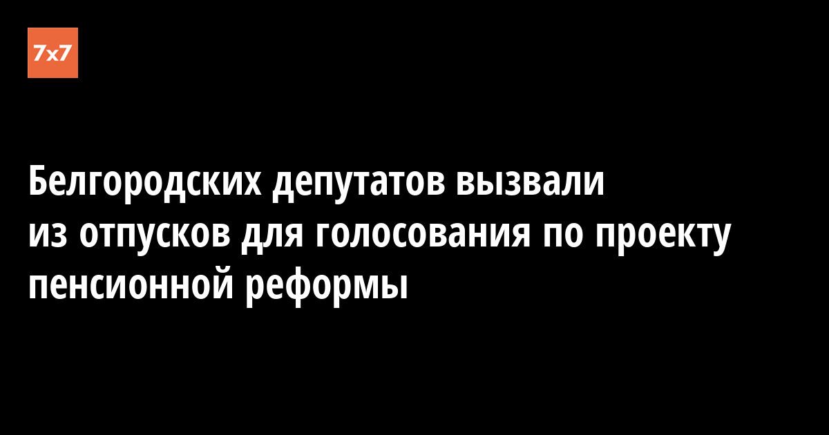 Белгородская областная дума 16 июля проголосовала за законопроект о повышении пенсионного возраста. Депутатов вызвали из отпусков на внеочередную сессию, чтобы они выразили свое мнение о пенсионной реформе. Как сообщила корреспонденту «7x7» депутат думы Анастасия Байбикова, 29 из 38 присутствовавших депутатов поддержали законопроект.