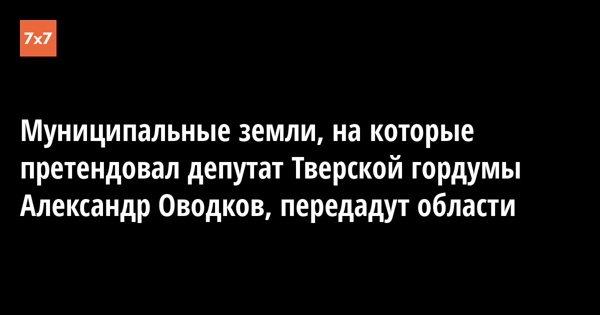 Губернатор Тверской области Игорь Руденя 20 июля дал поручение забрать в областную собственность 281 гектар земли в Твери, который находился в бессрочном пользовании депутата Тверской гордумы Алексея Оводкова и принадлежит муниципалитету. Об этом «7x7» рассказал источник, знакомый с итогами совещания в правительстве региона.