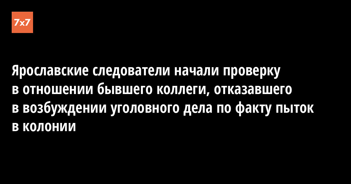 Следователь, который отказал в возбуждении дела по факту пыток в ярославской исправительной колонии №1, год назад уволился из следственного управления. В отношении него началась процессуальная проверка. Об этом корреспонденту «7x7» 23 июля сообщила пресс-секретарь ярославского управления Следственного комитета Кристина Гузовская.