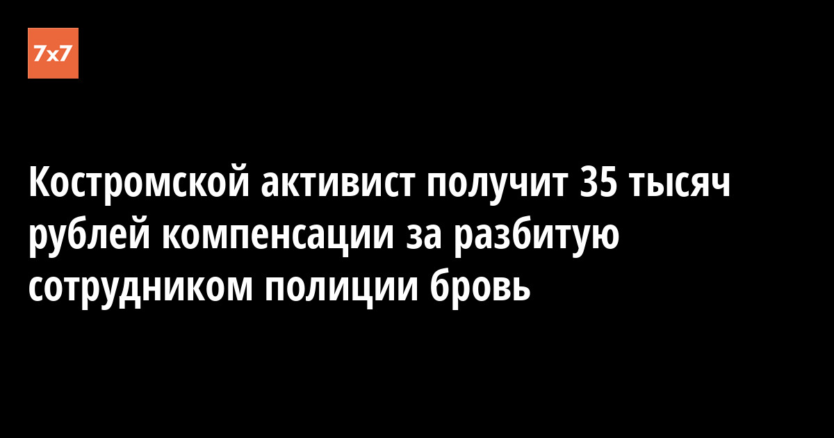 Судья Свердловского суда Костромы Ольга Тележкина назначила 35 тыс. руб. компенсации морального вреда бывшему заместителю координатора костромского штаба Алексея Навального Александру Зыкову за то, что год назад сотрудник полиции ударом головы рассек ему бровь. Об этом 2 августа активист сообщил корреспонденту «7х7».