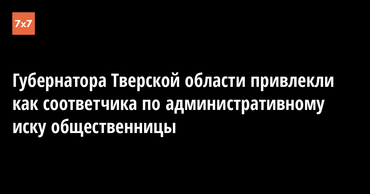 Губернатора Тверской области Игоря Руденю привлекли в качестве соответчика по административному иску общественницы Татьяны Джинчвеладзе, которая требует разрешить пикеты у административных зданий. Решение принял 27 августа Тверской областной суд. Информацию об этом общественница разместила в Facebook, факт корреспонденту «7x7» подтвердили в пресс-службе суда.