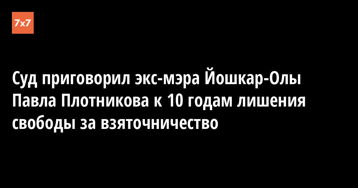 Йошкар-Олинский городской суд 6 сентября приговорил бывшего мэра Йошкар-Олы Павла Плотникова к 10 годам лишения свободы строгого режима за получение взяток, передает корреспондент «7x7» из зала суда.
