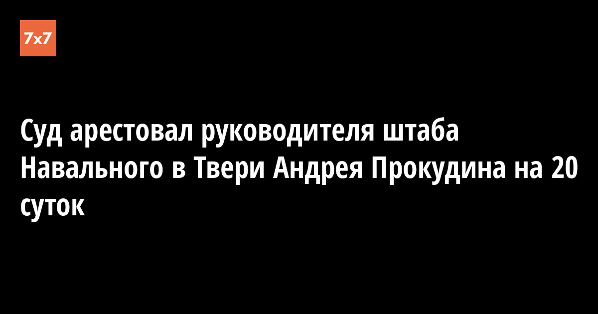 Центральный районный суд Твери 10 сентября арестовал руководителя штаба Навального в Твери Андрея Прокудина на 20 суток за повторное нарушение порядка организации митинга и участие в несанкционированной акции. Об этом сообщается в группе штаба. Информацию об аресте подтвердила пресс-служба суда.