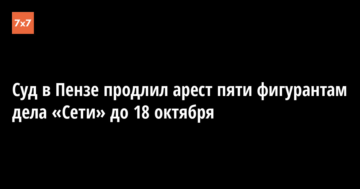 В Пензе 13 сентября Ленинский районный суд продлил арест пяти фигурантам дела о террористическом сообществе «Сеть». Антифашисты Арман Сагынбаев, Дмитрий Пчелинцев, Андрей Чернов, Илья Шакурский и Василий Куксов останутся под стражей до 18 октября. Об этом «7x7» рассказала мать одного из них Светлана Пчелинцева.