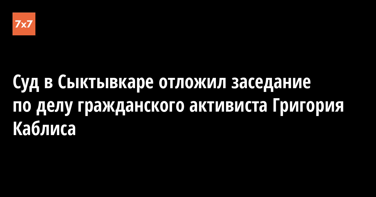 Сыктывкарский городской суд отложил на 27 сентября рассмотрение административного дела гражданского активиста Григория Каблиса, обвиняемого в организации несанкционированной акции против повышения пенсионного возраста. Об этом «7x7» сообщил правозащитник Эрнест Мезак 22 сентября. По его мнению, активист не может считаться организатором мероприятия, так как не участвовал в его подготовке и согласованиях с городскими властями.
