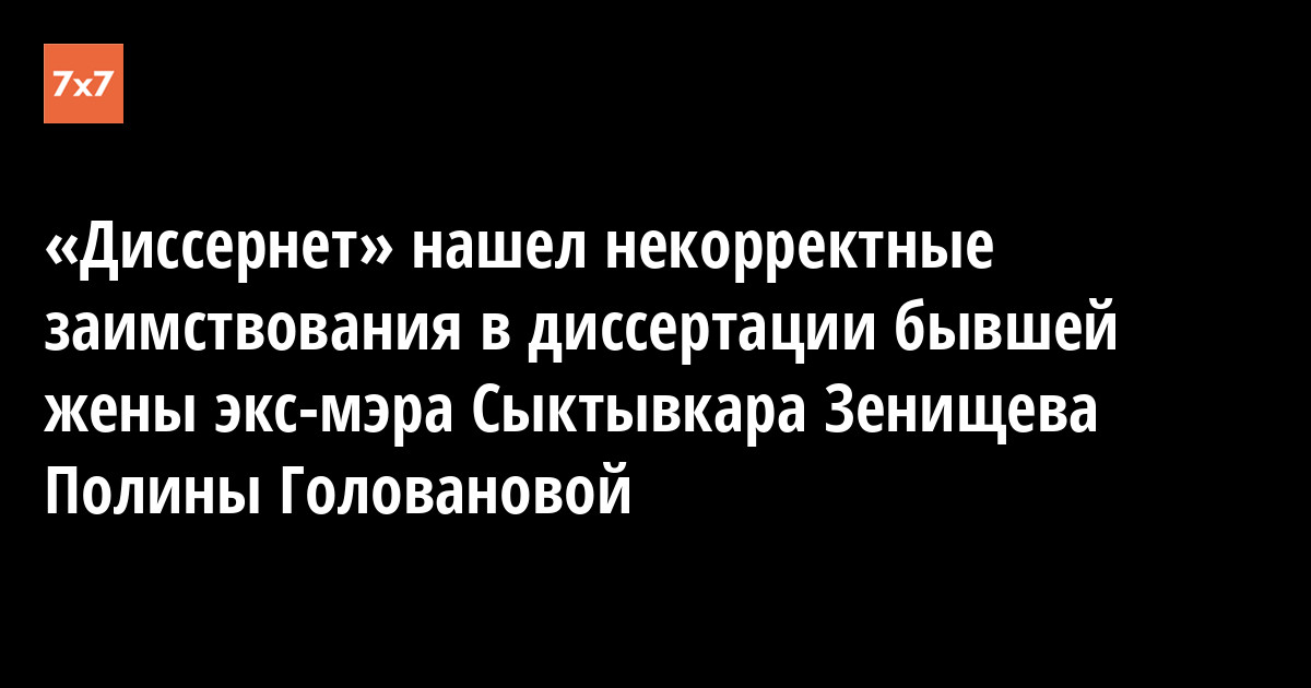 Сетевое сообщество «Диссернет», которое проверяет научные работы на плагиат, опубликовало таблицу заимствований в кандидатской диссертации предпринимателя и бывшей жены экс-мэра Романа Зенищева, обвиняемого в получении взятки, Полины Головановой.