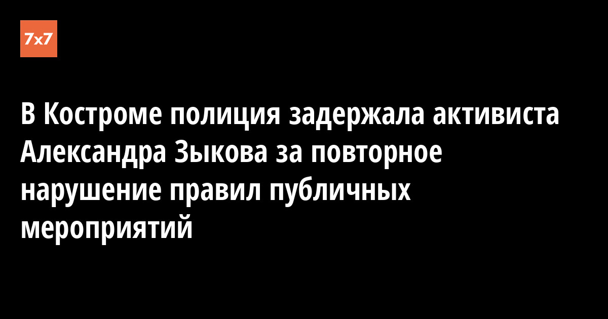 Бывшего заместителя координатора штаба Алексея Навального в Костроме Александра Зыкова задержали у него дома за повторное нарушение правил организации публичного мероприятия. Его отвезли в отдел полиции, сообщил активист 4 октября на своей странице в Facebook.