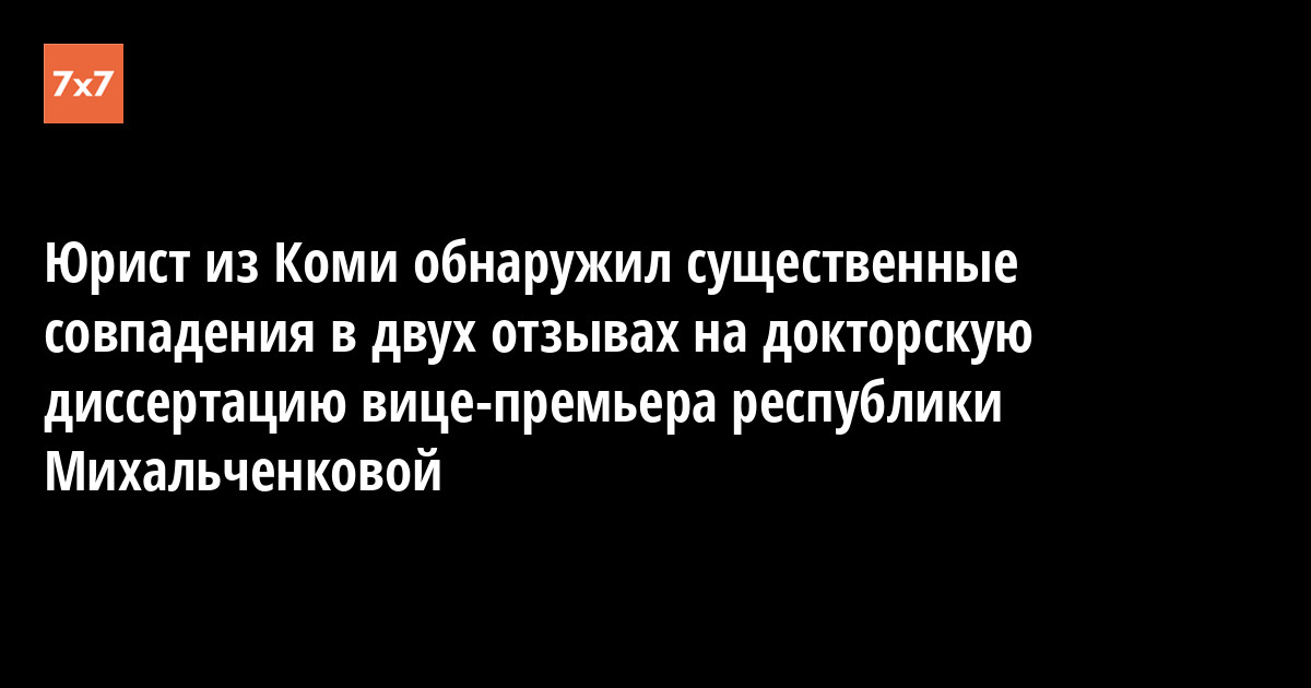 Юрист из Коми Виктор Воробьёв обнаружил существенные совпадения в двух отзывах на докторскую диссертацию вице-премьера, министра образования, науки и молодежной политики республики Натальи Михальченковой. Эти отзывы написали ректор Коми республиканской академии государственной службы и управления Татьяна Фёдорова и ректор Ленинградского госуниверситета имени А. С. Пушкина Станислав Еремеев. Обе работы выложены на сайте диссертационного совета СПбГУ.