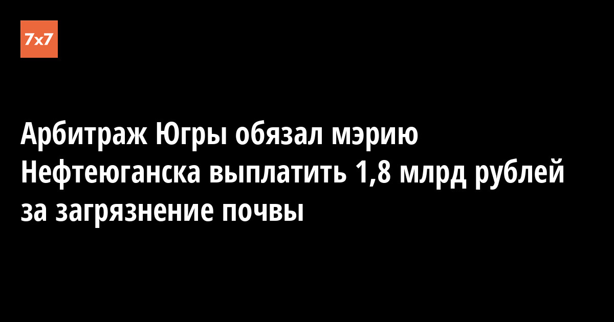 Арбитражный суд Ханты-Мансийского автономного округа удовлетворил иск регионального управления Росприроднадзора к администрации Нефтеюганска о взыскании 1,8 млрд руб. за вред, причиненный почве. Сообщение об этом опубликовал сайт суда 25 октября.