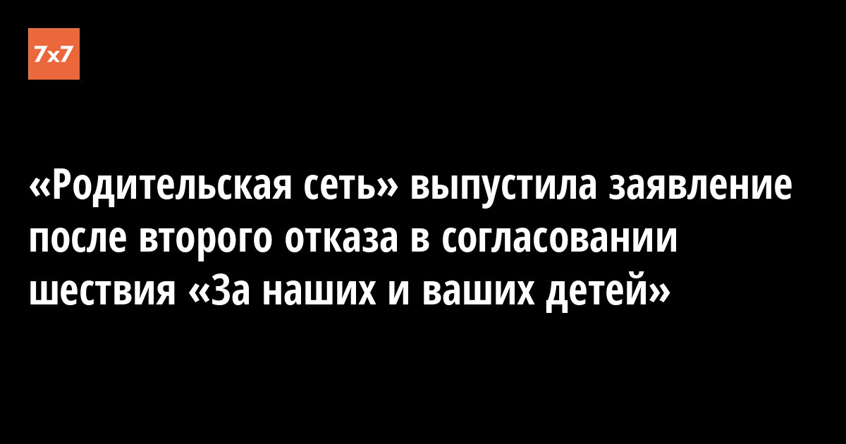 Движение родителей пострадавших от пыток фигурантов дела «Сети» и родители подозреваемых по делу организации «Новое величие» выпустило заявление после того, как власти Москвы отказались согласовать второй предложенный активистами маршрут шествия «За наших и ваших детей: шествие в защиту нового поколения». Его опубликовал Telegram-канал Rupression 25 октября.