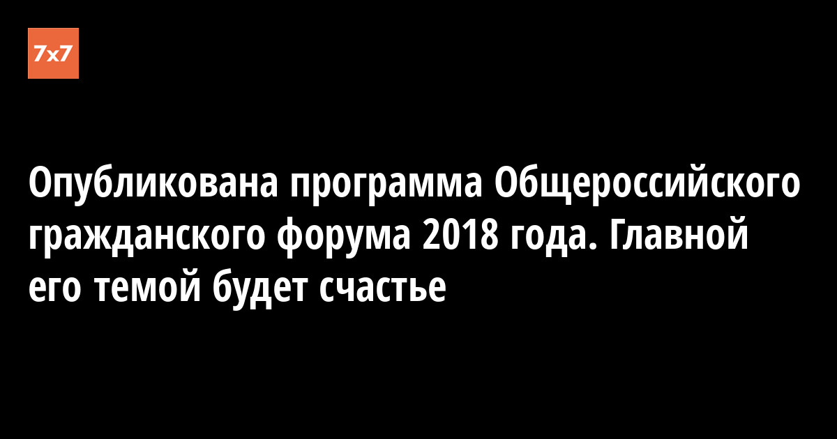 На сайте Общероссийского гражданского форума (ОГФ) 8 ноября опубликовали программу мероприятия в 2018 году. Большинство обсуждаемых тем на форуме будет касаться уровня счастья в России.