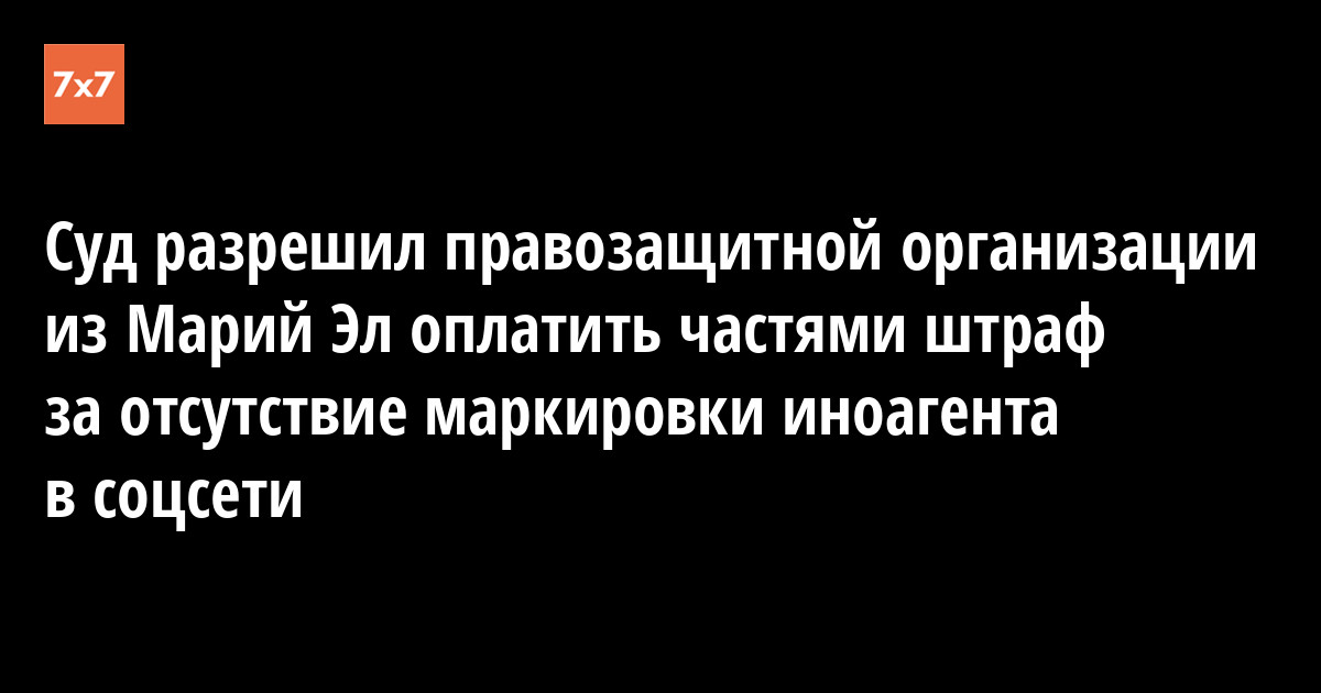 Межрегиональная правозащитная организация «Человек и Закон» из Йошкар-Олы не успела собрать всю сумму для погашения штрафа в 150 тыс. руб. за отсутствие маркировки иностранного агента на странице в Facebook. Верховный суд Марий Эл предоставил возможность оплатить штраф полностью до конца года, пишут правозащитники на своем официальном сайте.