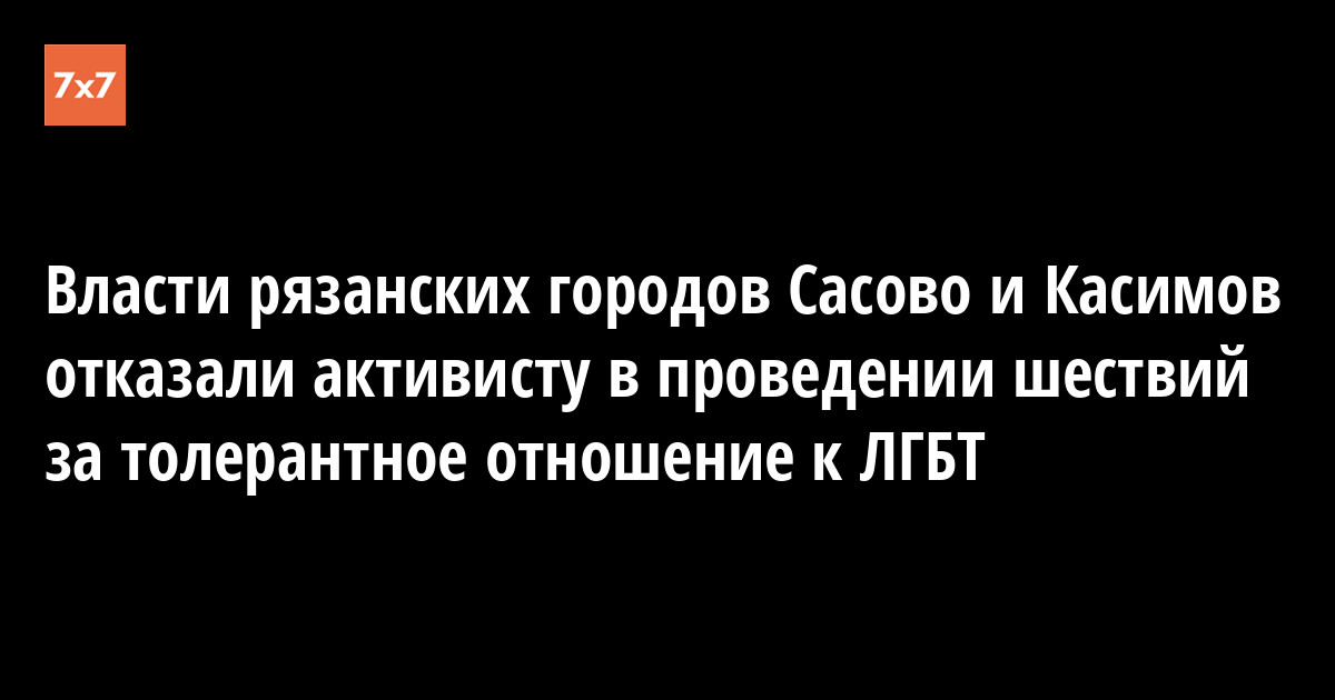 Власти Касимова и Сасова отказались согласовать проведение гей-парадов, уведомления о которых подал московский ЛГБТ-активист Николай Алексеев. Об этом он рассказал корреспонденту «7x7» 22 ноября.