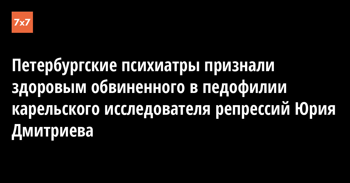 Историк и краевед Юрий Дмитриев прошел сексологическую и психиатрическую экспертизу в петербургской больнице №6. После обвинений в педофилии врачи не нашли у него психических отклонений. Об этом 29 ноября сообщил адвокат Дмитриева Виктор Ануфриев.
