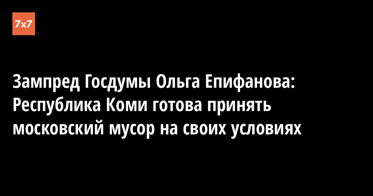 Заместитель председателя Государственной думы Ольга Епифанова анонсировала свалку московского мусора в Коми. По словам депутата, власти республики готовы принимать отходы, но на своих условиях. Об этом она заявила 6 декабря на втором международном кинофестивале стран Арктики Arctic open в Архангельске.