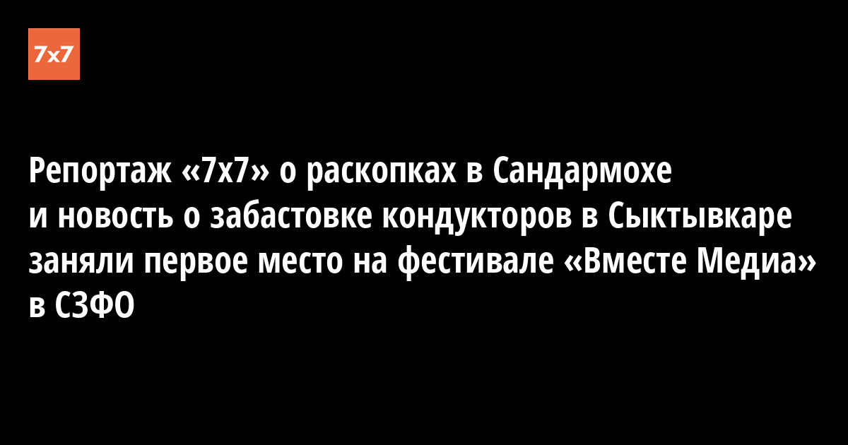 Два материала — репортаж корреспондента «7x7» Сергея Маркелова «Перекопать Сандармох» о раскопках на месте массовых расстрелов и новость замглавного редактора интернет-журнала Максима Полякова о забастовке кондукторов в Сыктывкаре получили первый приз фестиваля «Вместе Медиа» на Северо-Западе. Об этом сообщил корреспондент «7x7» с церемонии награждения, которая завершилась вечером 8 декабря в Петербурге.