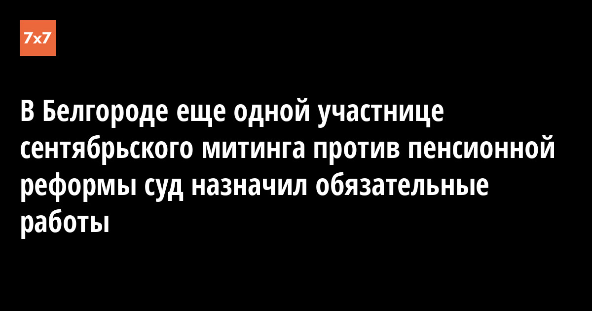 Через четыре месяца после не согласованного с чиновниками митинга против повышения пенсионного возраста Октябрьский суд Белгорода назначил 30 часов обязательных работ участнице акции Татьяне Повалий. Заседание прошло 17 декабря, — об этом Повалий сообщила «7x7».