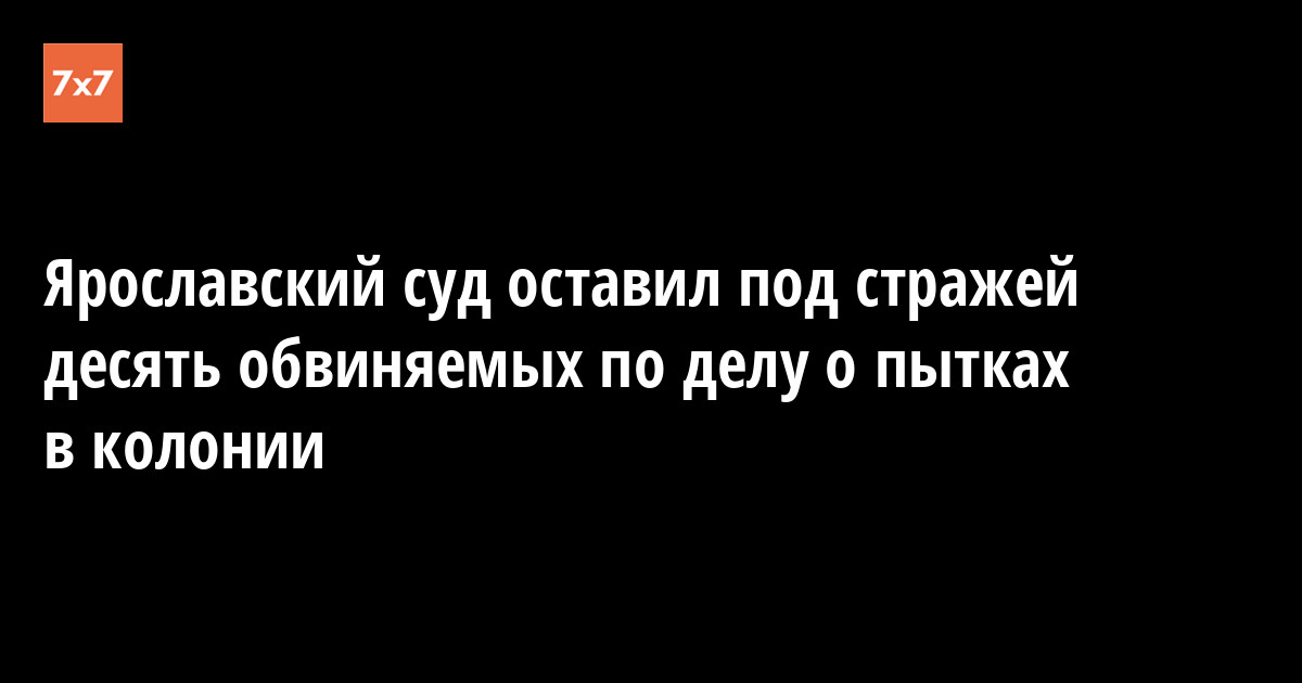 Фрунзенский районный суд Ярославля 18 декабря продлил арест десяти бывшим сотрудникам ярославских исправительных учреждений. Дмитрий Соловьёв, Дмитрий Драчёв, Максим Яблоков, Сергей Ефремов, Сардор Зиябов, Руслан Цветков, Дмитрий Никитенко, Алексей Бровкин, Игорь Богданов и Сипан Мамоян останутся под стражей до 20 марта.