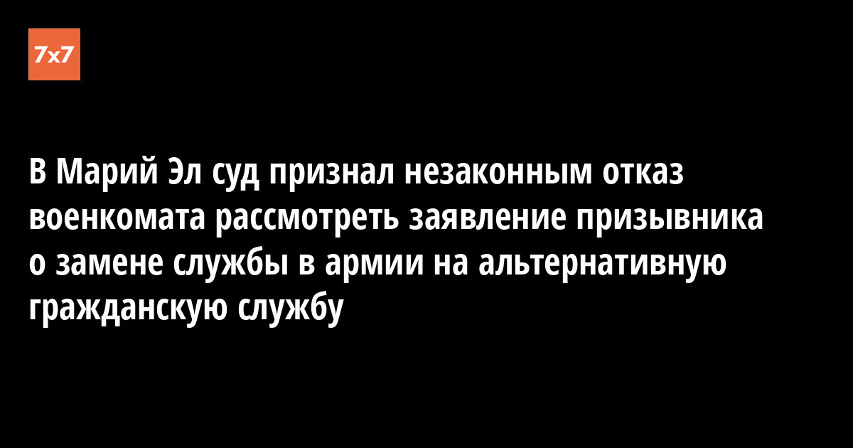 Призывник из поселка Медведево, сотрудник Ледового дворца Марий Эл Арсений Афанасьев 19 декабря получил в Медведевском районном суде копию решения по его иску против военкомата Медведевского и Килемарского районов. Суд обязал военкомат рассмотреть заявление призывника о замене военной службы альтернативной гражданской службой (АГС), сообщил корреспондент «7x7».