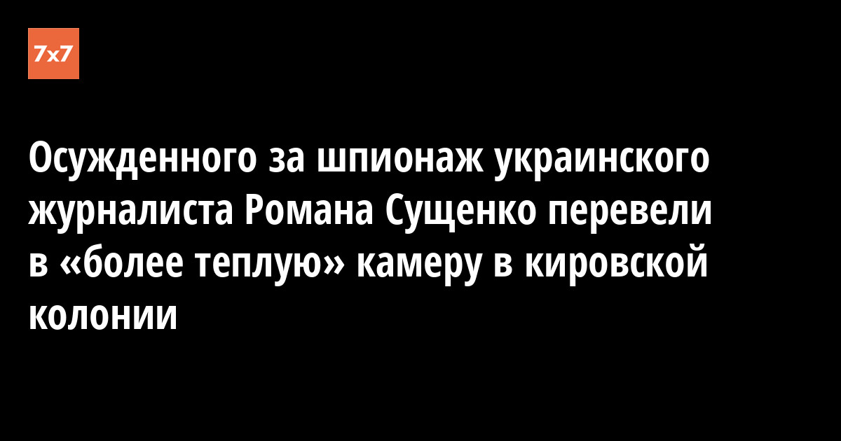 Руководство исправительной колонии №11 в Кирово-Чепецке решило бытовые проблемы, с которыми столкнулся в учреждении украинский журналист Роман Сущенко, осужденный за шпионаж: его переместили в более теплую камеру и у него появился доступ к кипятку. Об этом корреспонденту «7x7» 20 декабря рассказал юрист Марк Фейгин. Он встретился с Сущенко после того, как руководство ИК-11 допустило его в учреждение.
