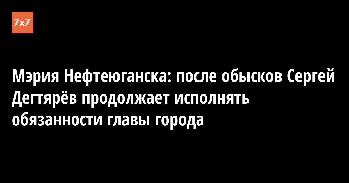24 января СМИ сообщили об обысках в кабинете и квартире главы Нефтеюганска Сергея Дегтярёва. Как пишет издание «Знак.ком», обыски могут быть связаны с продажей в 2016 году частной фирме «Технологии современного управления» двух участков земли в микрорайоне №9 Нефтеюганска по цене значительно ниже кадастровой стоимости. Позже Арбитражный суд признал сделку недействительной. Считается, что «Технологии современного управления» аффилированы с одним из депутатов думы ХМАО.