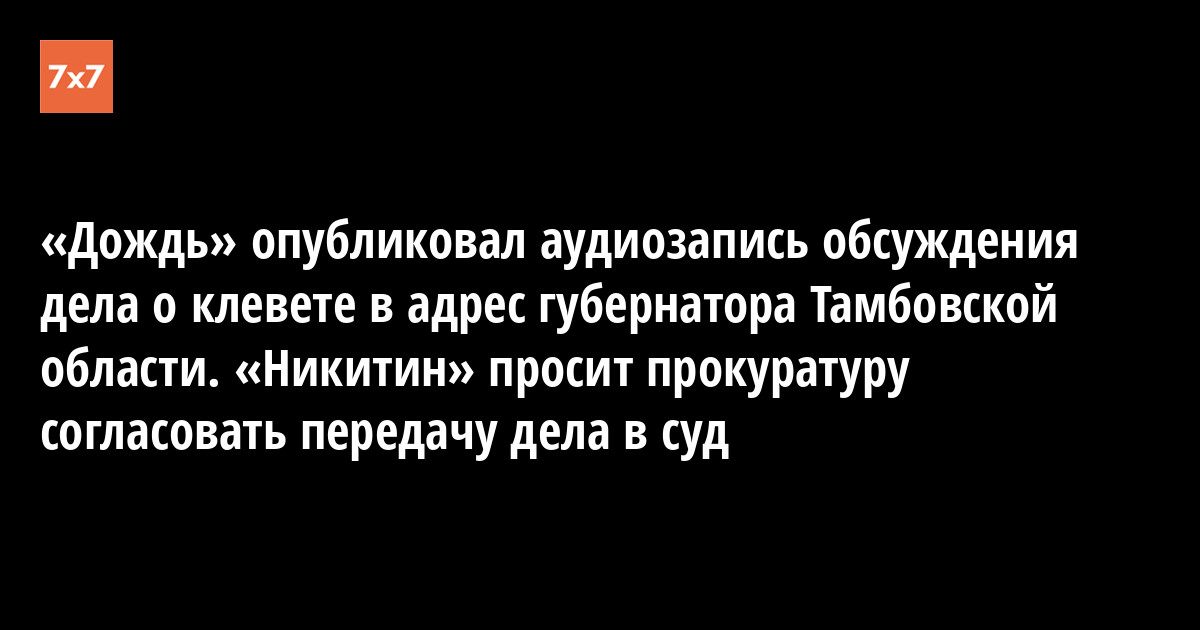 Телеканал «Дождь» 12 февраля опубликовал аудиозапись разговора человека, голос которого похож на голос губернатора Тамбовской области Александра Никитина. В нем он, предположительно, беседует с прокурором по поводу уголовного дела о клевете за критическую публикацию в свой адрес. «Никитин» просит прокурора согласовать передачу уголовного дела в суд.