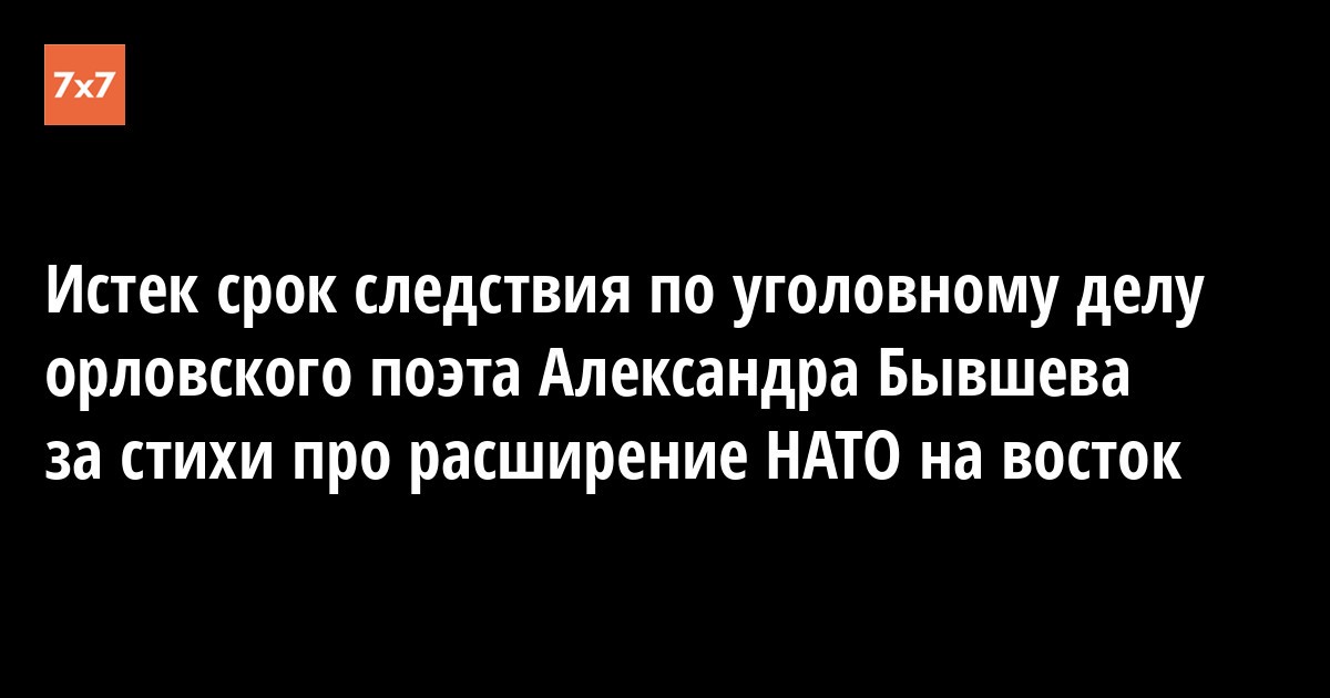 Срок следствия по уголовному делу об экстремизме в стихотворении орловского поэта Александра Бывшева истек. О продлении сроков ему не сообщали. Об этом 28 февраля рассказал «7x7» адвокат Бывшева Владимир Сучков.