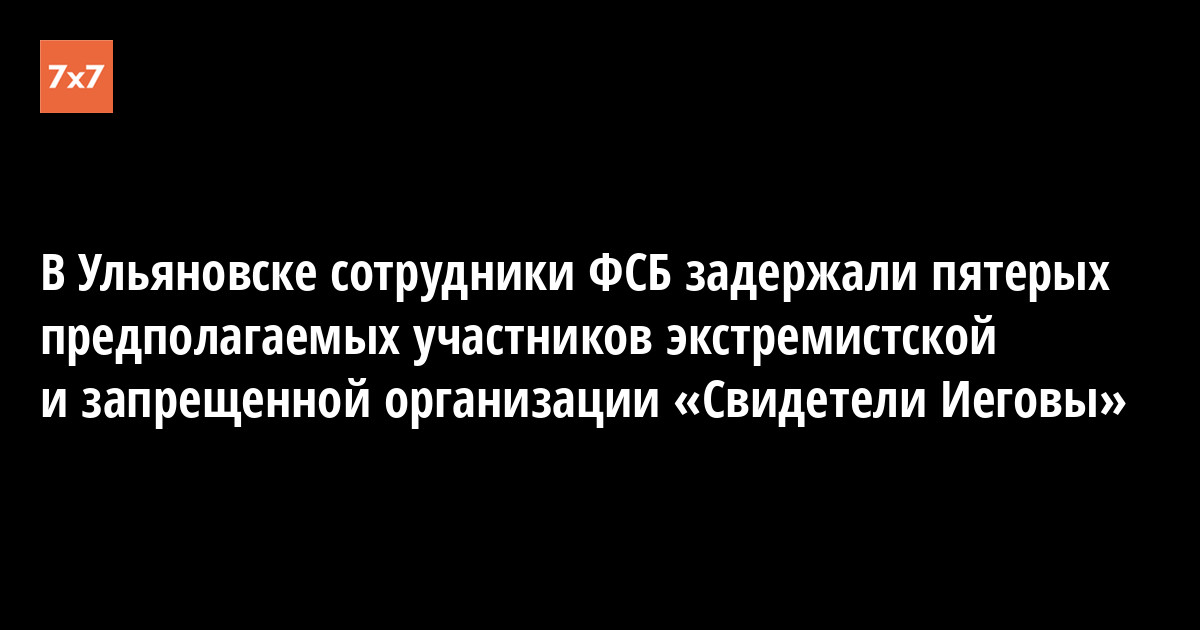 В Ульяновске задержали пятерых предположительных участников признанной экстремистской и запрещенной в России организации «Свидетели Иеговы». Об этом 28 февраля сообщил «Интерфакс» со ссылкой на пресс-службу местного управления ФСБ.