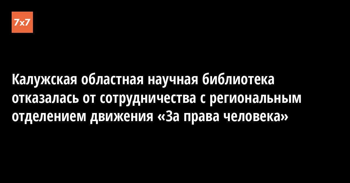 Директор Калужской областной научной библиотеки имени Белинского Марина Аржанкова 11 марта в телефонном разговоре сообщила правозащитнице Любови Мосеевой-Элье о прекращении договора по предоставлению правовых услуг населению между библиотекой и Калужским региональным отделением движения «За права человека». По сообщению правозащитницы, опубликованном в ее блоге на сайте «7x7», ей сказали об этом, когда она шла в библиотеку на свое рабочее место, где правозащитница в течение многих лет оказывала правовую помощь нуждающимся в ней гражданам.