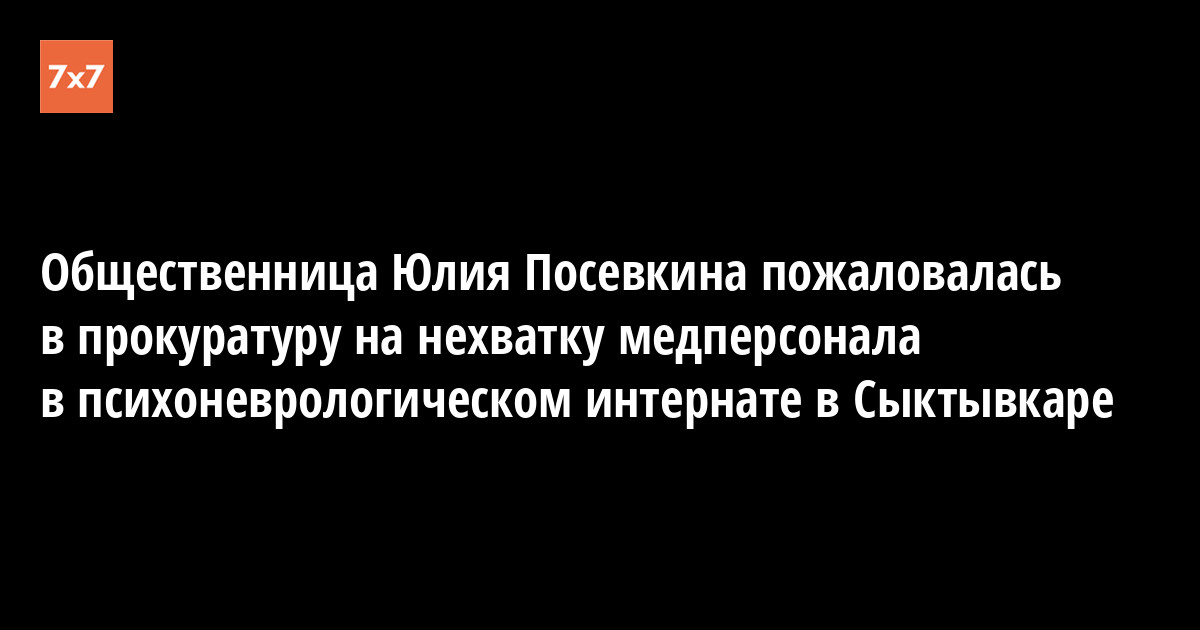 Руководитель общественной организации «Особое детство» Юлия Посевкина 13 марта пожаловалась в прокуратуру Коми, что в Кочпонском психоневрологическом интернате (ПНИ) не хватает медперсонала. В отделении «Милосердие» ПНИ работают 11 медсестер на 87 проживающих, сообщила общественница «7х7».