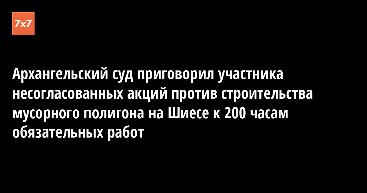 Суд в Архангельске приговорил активиста Валерия Шептухина к 200 часам исправительных работ за участие в согласованных акциях 7 апреля. Такое решение суд принял по двум административным протоколам, составленным полицией, — за участие в шествии и в митинге. Об этом 11 апреля сообщил Telegram-канал «Поморье — не помойка».