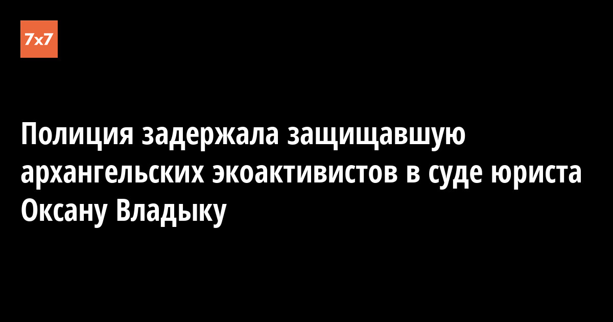 На выходе из здания Октябрьского районного суда, где рассматривались дела активистов, протестовавших против строительства полигона твердых бытовых отходов в Ленском районе Архангельской области (станция Шиес) вечером 11 апреля задержали юриста Оксану Владыку, которая выступала там в роли защитника. Об этом рассказал 12 апреля «7x7» активист Анатолий Бызов.