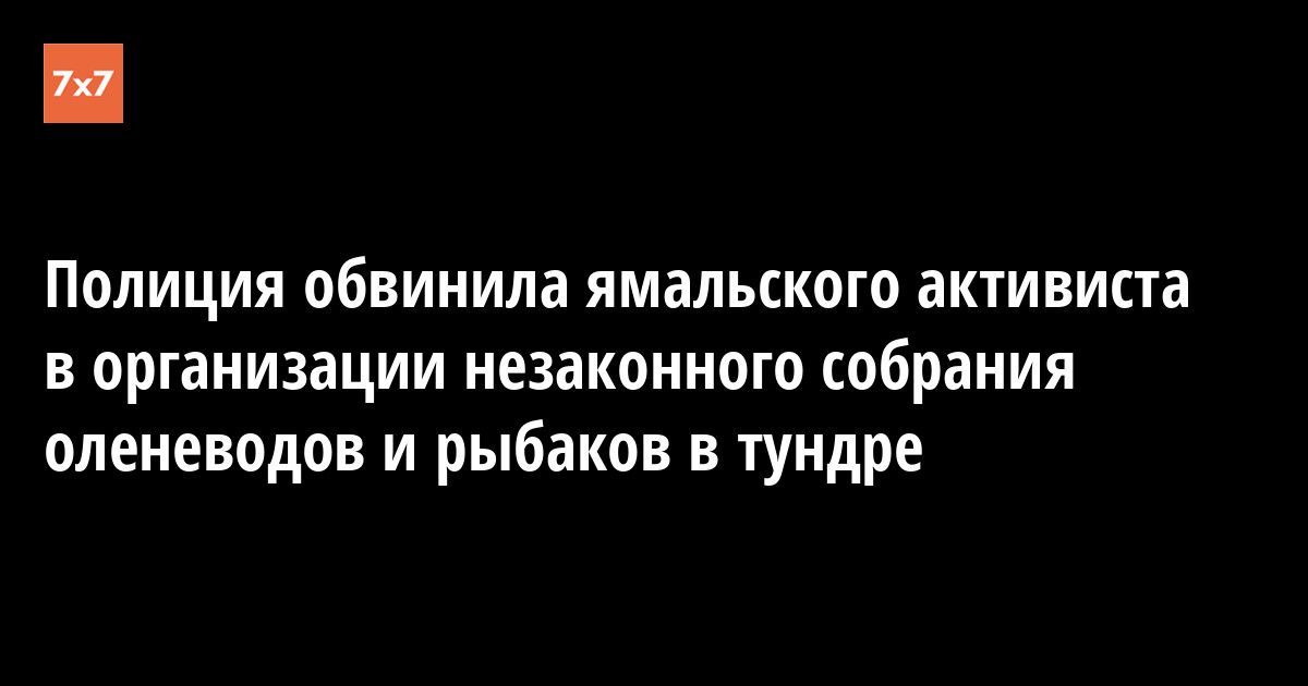 Полиция возбудила против ямальского активиста Ейко Сэротэтто административное дело за организацию собрания без уведомления. Он организовал в тундре встречу рыбаков и оленеводов, чтобы потребовать от губернатора и Законодательного собрания Ямало-Ненецкого автономного округа запретить строительство газопровода через Обскую губу и взять на контроль расследование убийства оленевода Николая Хоротэтто. Об этом 16 апреля сообщил «7x7» сам Сэротэтто.