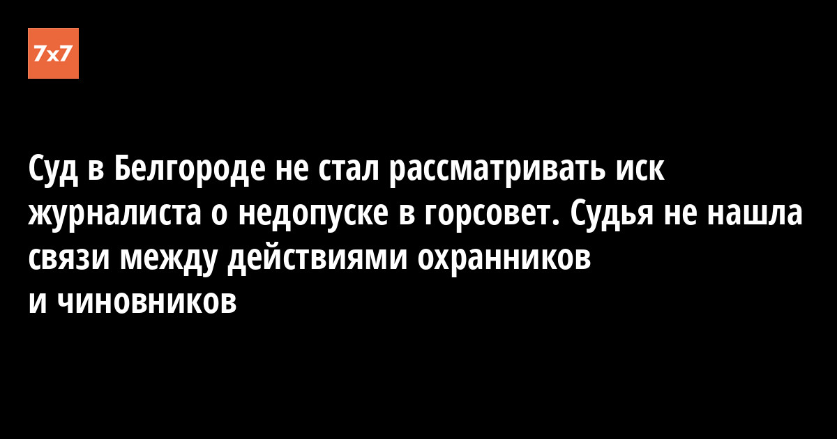 Судья Наталия Москвитина вернула Григорьевой иск для устранения недостатков в заявлении. В частности, как следует из определения суда, в иске отсутствовали указания на орган власти или уполномоченное лицо, из-за которого журналист не попала на заседание муниципального парламента. В заявлении журналист написала, что ее не пустили на заседание два неизвестных ей человека в форме муниципальной стражи, но суд посчитал, что в заявлении нет сведений о противозаконных действиях представителей администрации Белгорода или горсовета.