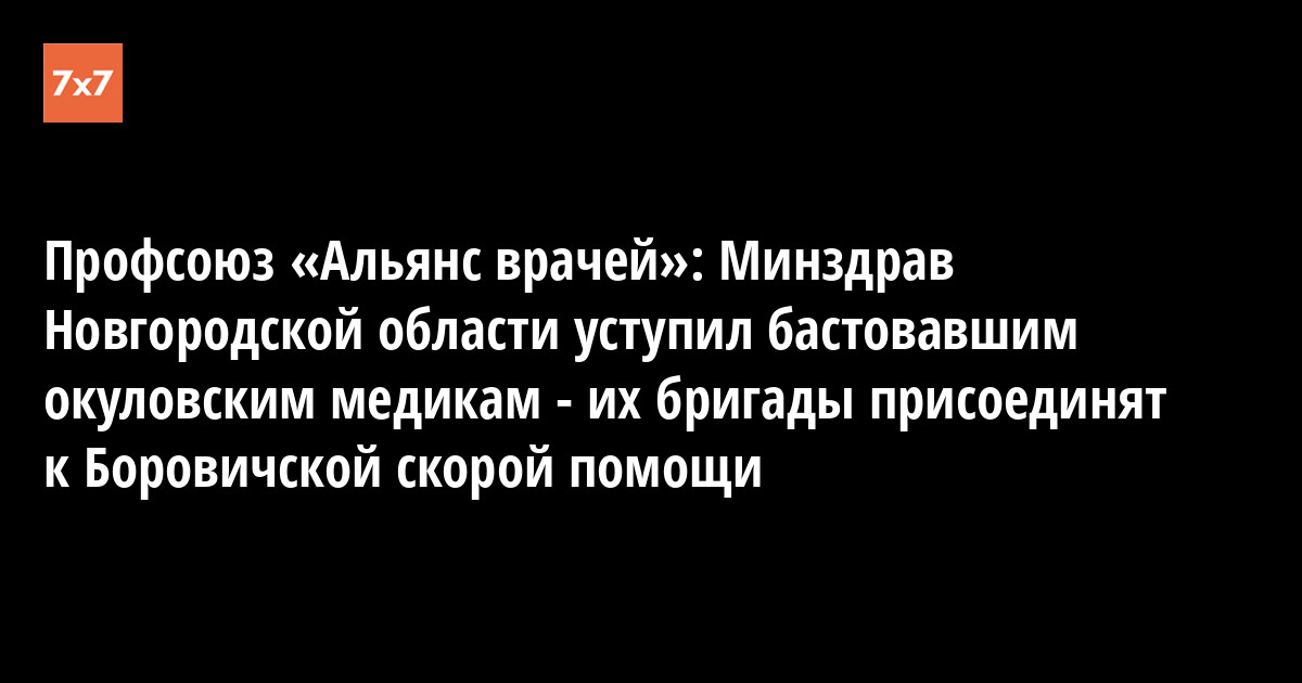Координатор профсоюза «Альянс врачей» в Новгородской области Дмитрий Соколов 30 апреля со ссылкой на источники в медицинских учреждениях сообщил "7х7", что областной Минздрав решил присоединить с 7 мая станцию скорой помощи в Окуловке к Боровичской станции, где другие зарплаты и другой главный врач. Профсоюз назвал это победой бастовавших медиков.