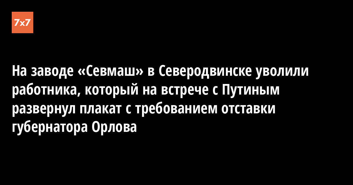 Председатель правления Союза садоводов города Северодвинска Пётр Васильев 30 апреля выложил в группе во «ВКонтакте» «Нет свалке в Рикасихе!» фотографию приказа об увольнении одного из сотрудников завода «Севмаш», один из которых 23 апреля развернул перед Владимиром Путиным баннер с требованием отправить губернатора Игоря Орлова в отставку. Васильев сообщил «7x7», что документ подлинный.