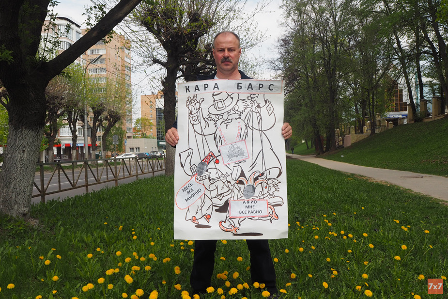 В руках Шестаков держал плакат, на котором литературный герой Карабас Барабас держит за веревочки своих кукол — Петрушку и Пьеро. На месте лица одного персонажа была приклеена фотография исполняющего обязанности главы городской администрации Сергея Карабасова, на месте лица другого — фотография губернатора Николая Любимова. Рядом с первым слова: «А я и. о., мне все равно», рядом со вторым: «Здесь все законно». Шестаков выходил на одиночный пикет с этим плакатом в апреле 2018 года, и с тех пор, по его словам, ничего не изменилось: чиновники продолжают лоббировать интересы застройщиков, но не рядовых горожан.