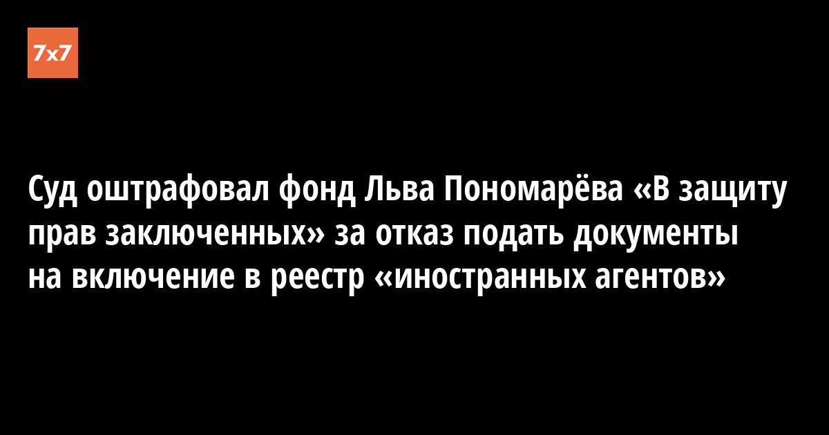 Мещанский районный суд Москвы 6 мая оштрафовал фонд правозащитника Льва Пономарёва «В защиту прав заключенных» на 300 тыс. руб. за работу без включения в реестр организаций, признанных «иностранными агентами». Решение было опубликовано 6 мая на сайте суда.