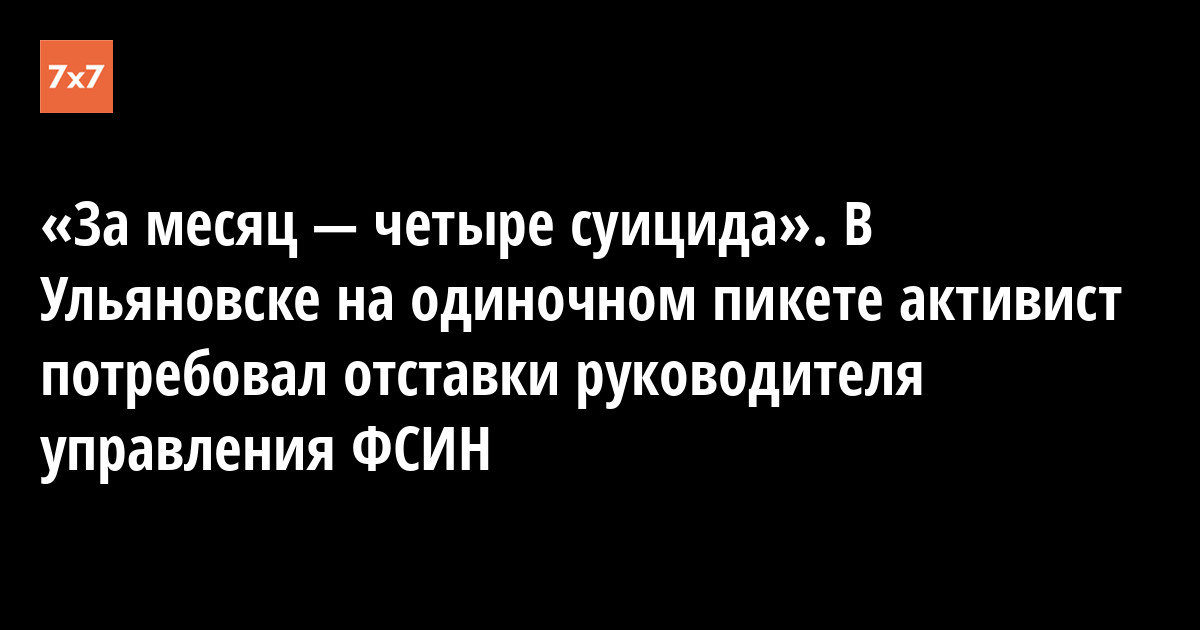 По данным правозащитной организации «За права человека», в апреле в ИК-9 Ульяновска произошло три самоубийства, еще одного заключенного врачи спасли. Организация также сообщала о суициде в СИЗО Ульяновска. Информацию об этом УФСИН по области подтвердило. По этим фактам Следственный комитет проводит проверки.