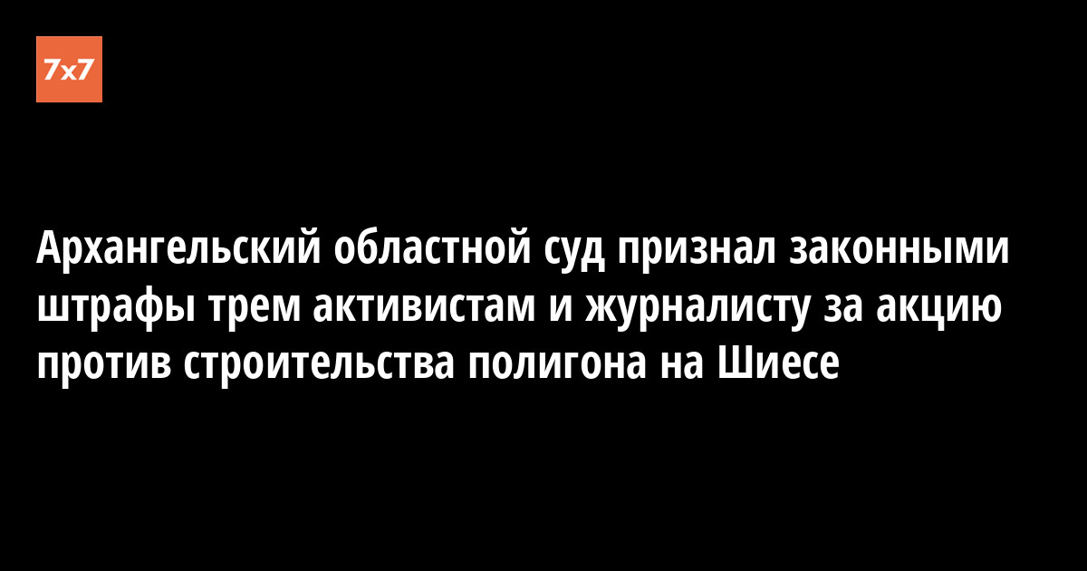 Архангельский областной суд 7 мая оставил без изменения постановления о штрафах активистам Елене Калининой, Дмитрию Кузнецову, Максиму Пушкину и журналисту Евгению Богучарскому. Об этом 7 мая сообщил «7x7» их защитник Алексей Куроптев из зала суда.