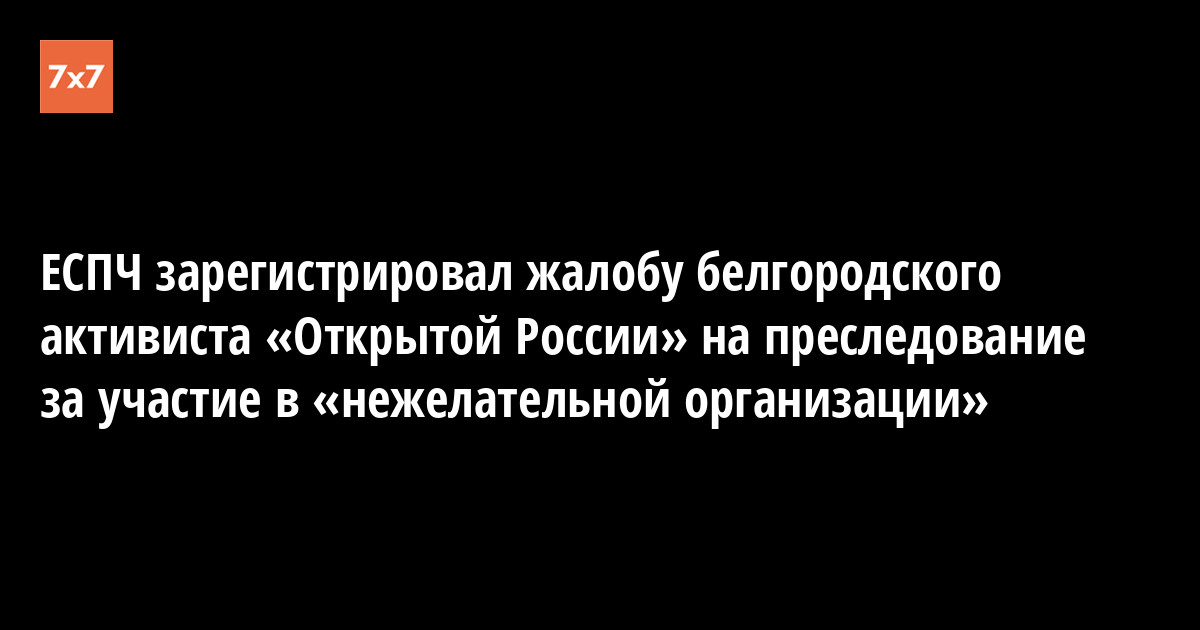 Европейский суд по правам человека зарегистрировал жалобу активиста белгородского отделения движения «Открытая Россия» (ОР) Максима Климова на два штрафа по 5 тыс. руб. за участие в “нежелательной организации”. Она стала девятой по счету жалобой в ЕСПЧ от участников организации. Об этом 10 мая сообщили в «Правозащите Открытки».