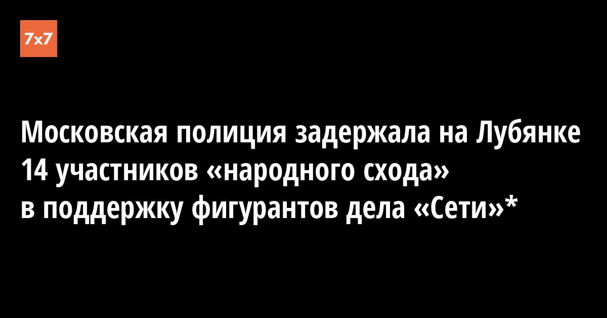 Полиция задержала 14 человек — участников «народного схода» у здания ФСБ на Лубянской площади в Москве. Они собрались, чтобы поддержать обвиняемых по делу «Сети»* и «Нового величия»*. Большая часть из них —12 человек – была задержана после акции. Об этом 13 мая сообщил портал «ОВД-Инфо».