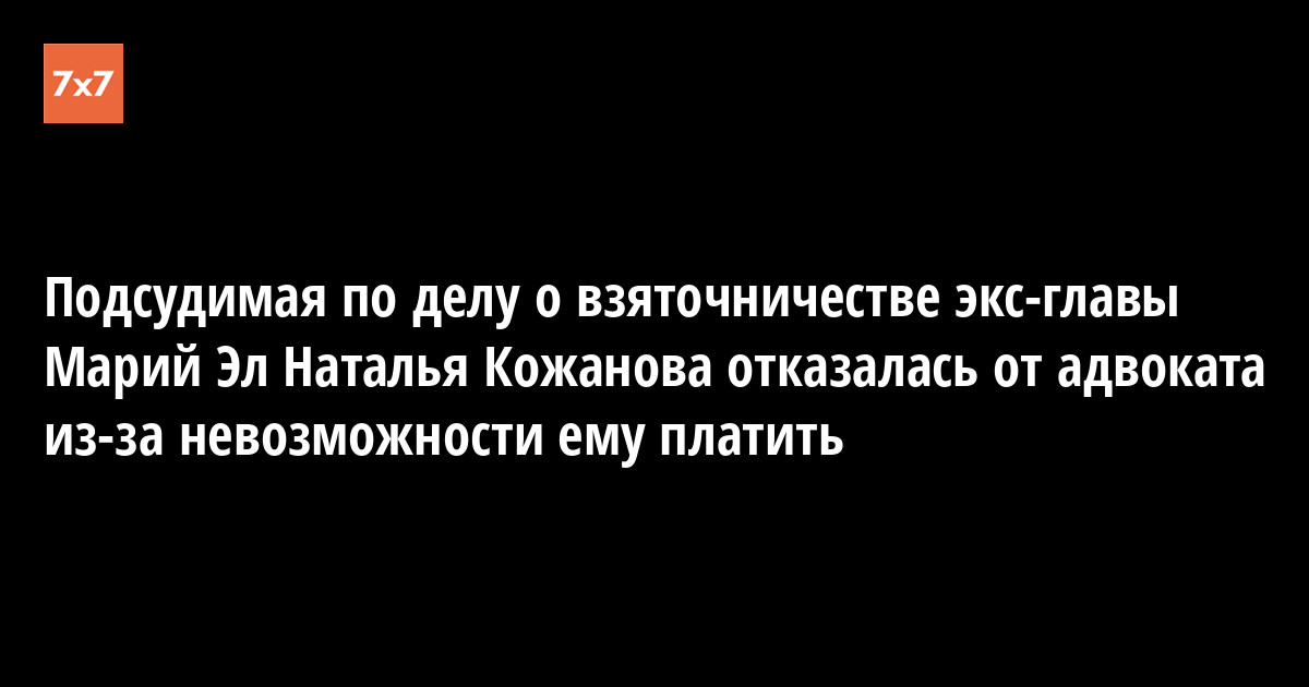На судебном заседании 14 мая посудимая по делу о получении взятки экс-главой Республики Марий Эл Леонидом Маркеловым Наталья Кожанова заявила суду, что отказывается от своего адвоката Арины Субботиной, так как не может платить за ее услуги. Об этом сообщил 14 мая корреспондент «7x7» из зала Нижегородского районного суда.