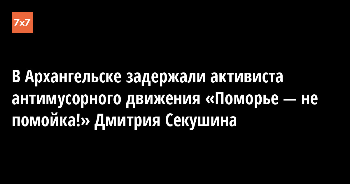 Пятеро полицейских задержали активиста Дмитрия Секушина на площади Ленина в центре Архангельска 14 мая во время бессрочной акции против строительства мусорного полигона на станции Шиес. Защитник экоактивистов Алексей Куроптев сообщил, что Секушина обвинили в повторном нарушение порядка организации либо проведения собрания, митинга, демонстрации, шествия или пикетирования (часть 8 статьи 20.2 Кодекса об административных правонарушениях).