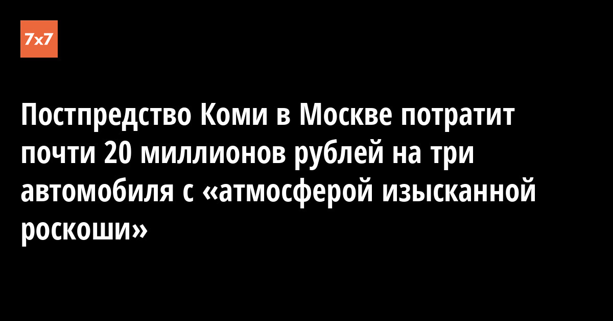 Как рассказал «7х7» вице-премьер правительства республики, постоянный представитель Коми при президенте России Григорий Саришвили, автохозяйство постпредства "нужно время от времени обновлять". Автомобили используют для перевозки чиновников из Коми, а также сдают в аренду для коммерческих перевозок.