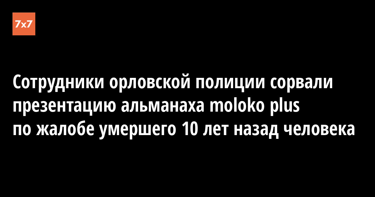 Сотрудники УМВД России по Орловской области пришли на презентацию альманаха moloko plus в «Орловский лекторий» 2 февраля 2019 года по жалобе Михаила Соболева, умершего в 2009 году. Документы из материалов дела опубликовал 15 мая в Facebook журналист Дмитрий Краюхин.