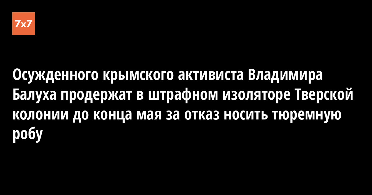 Осужденного за оскорбление росссийских органов власти и хранение боеприпасов украинского активиста Владимира Балуха продержат в штрафном изоляторе до 31 мая, сообщила Крымская правозащитная группа.